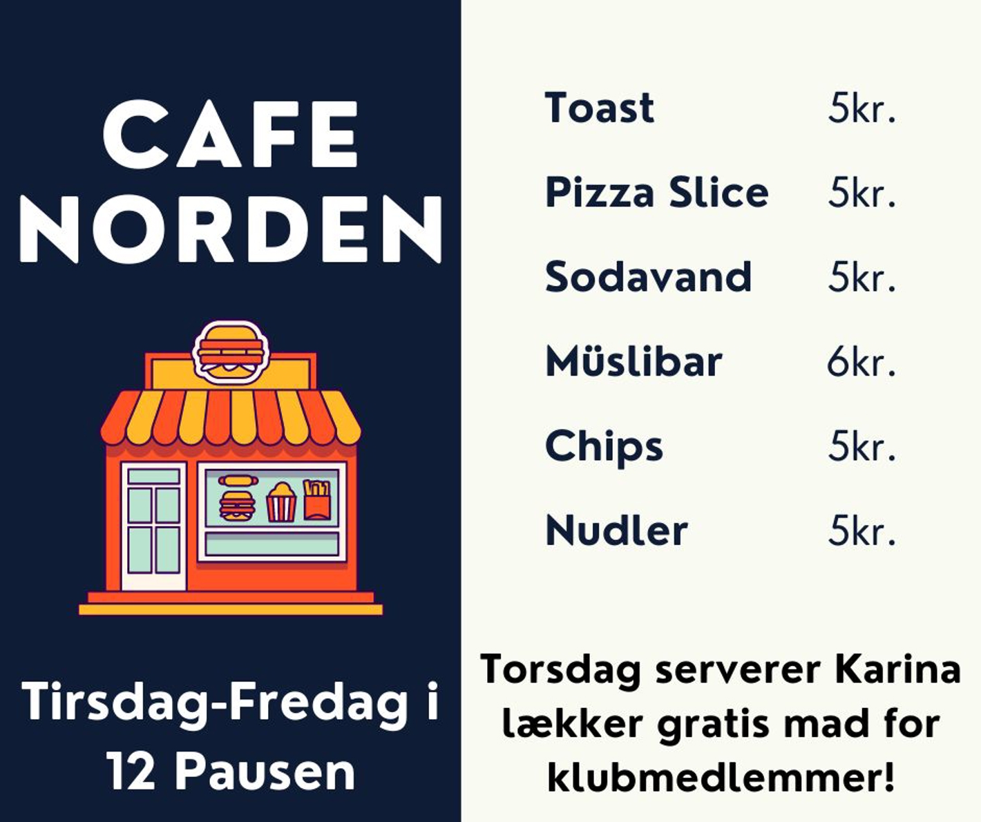 Vi holder åbent i spisefrikvarteret for klubbens medlemmer tirsdage-fredag. Her tilbyder vi en friskbagt toast, muslibar og andre snacks. Du kan spille bordtennis, pool og hygge inde når vejret er skidt. Torsdag laver Karina lækker gratis mad til alle JK medlemmer